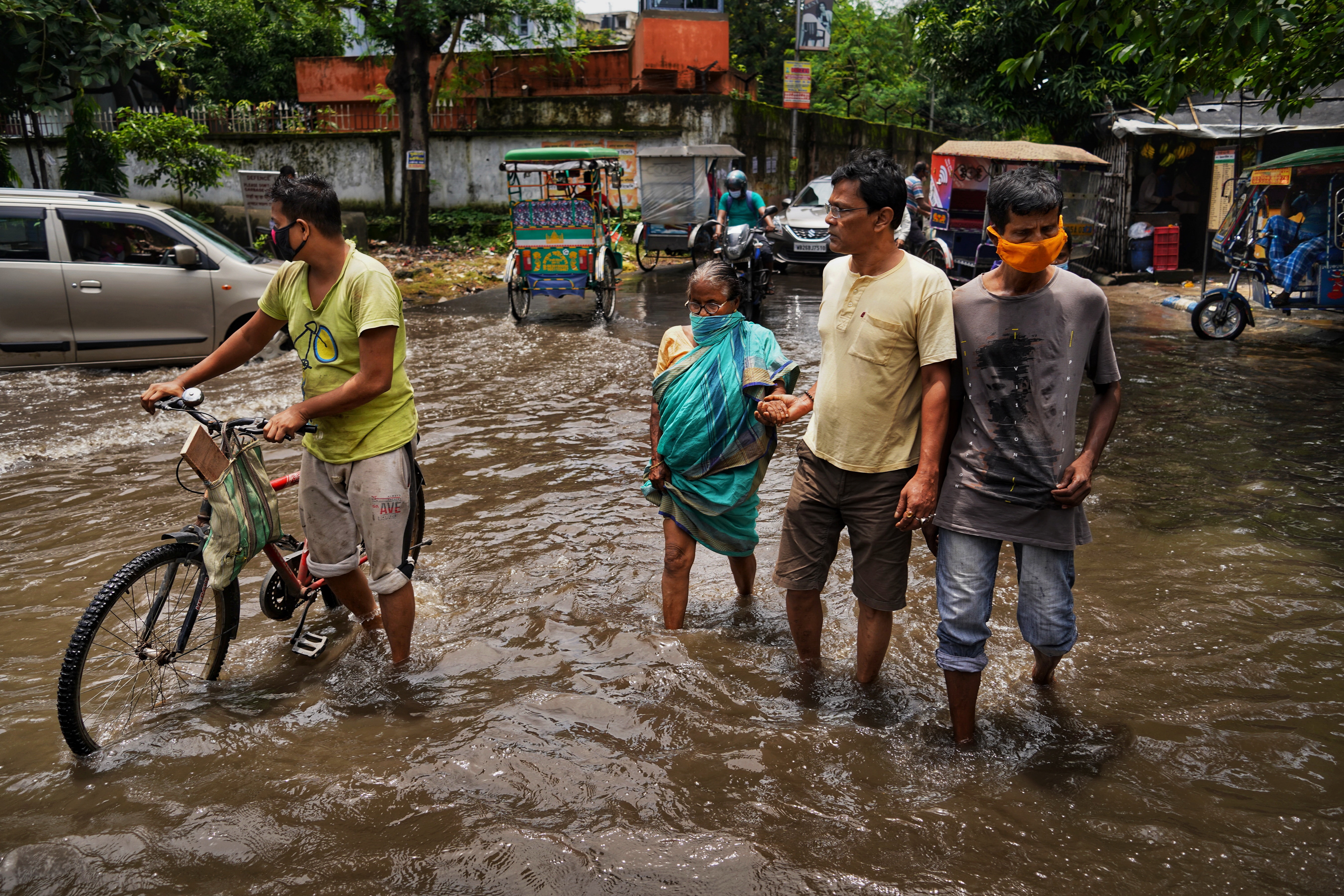 1. The woman says it is raining in Delhi right now.